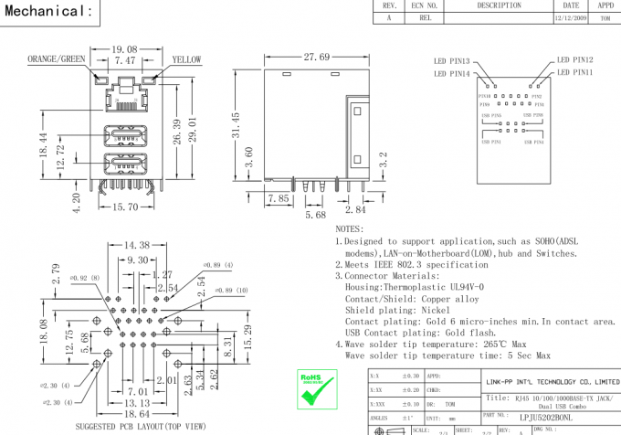 | سرعت مغناطیسی | Magnetics 10 / 100Mbps و 1000Mbps |