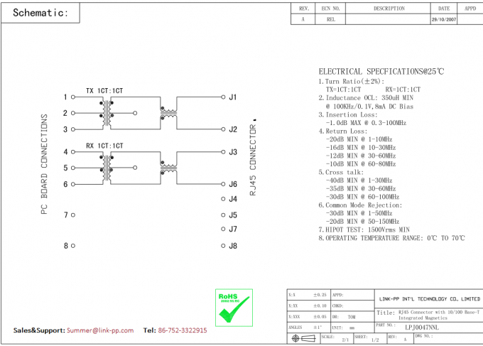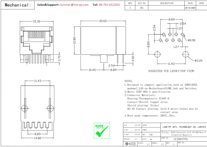 J00-0047 | LPJ0047NNL | LINK-PP | J00-0047 مغناطیسی RJ45 جک LPJ0047NNL 10 / 100Base-T Ethernet کامپیوتر ماژول |
