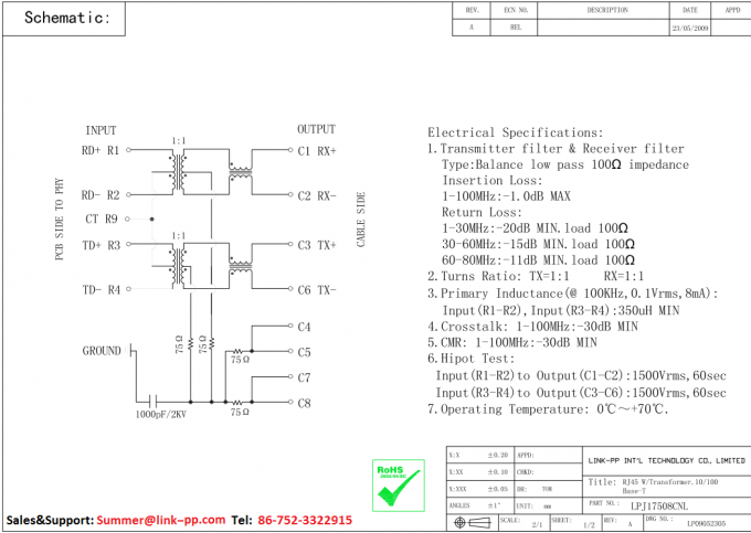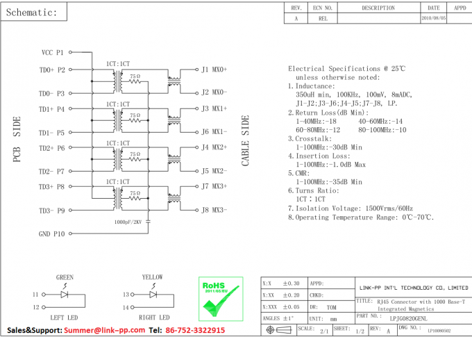 RJSE2M0010 | LPJ17508CNL | LINK-PP | RJSE2M0010 Mag پشته 2x1 پورت Rj45 LPJ17508CNL 10 / 100Base-T بدون LED | ||||||||||||||||||||||||||||||||||||