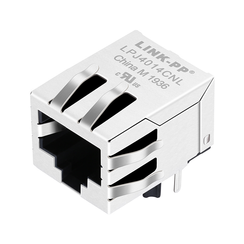 The LPJ4014CNL is a single-port RJ45 connector with integrated magnetics, designed and manufactured by LINK-PP for reliable 10/100 Base-T Ethernet connectivity.